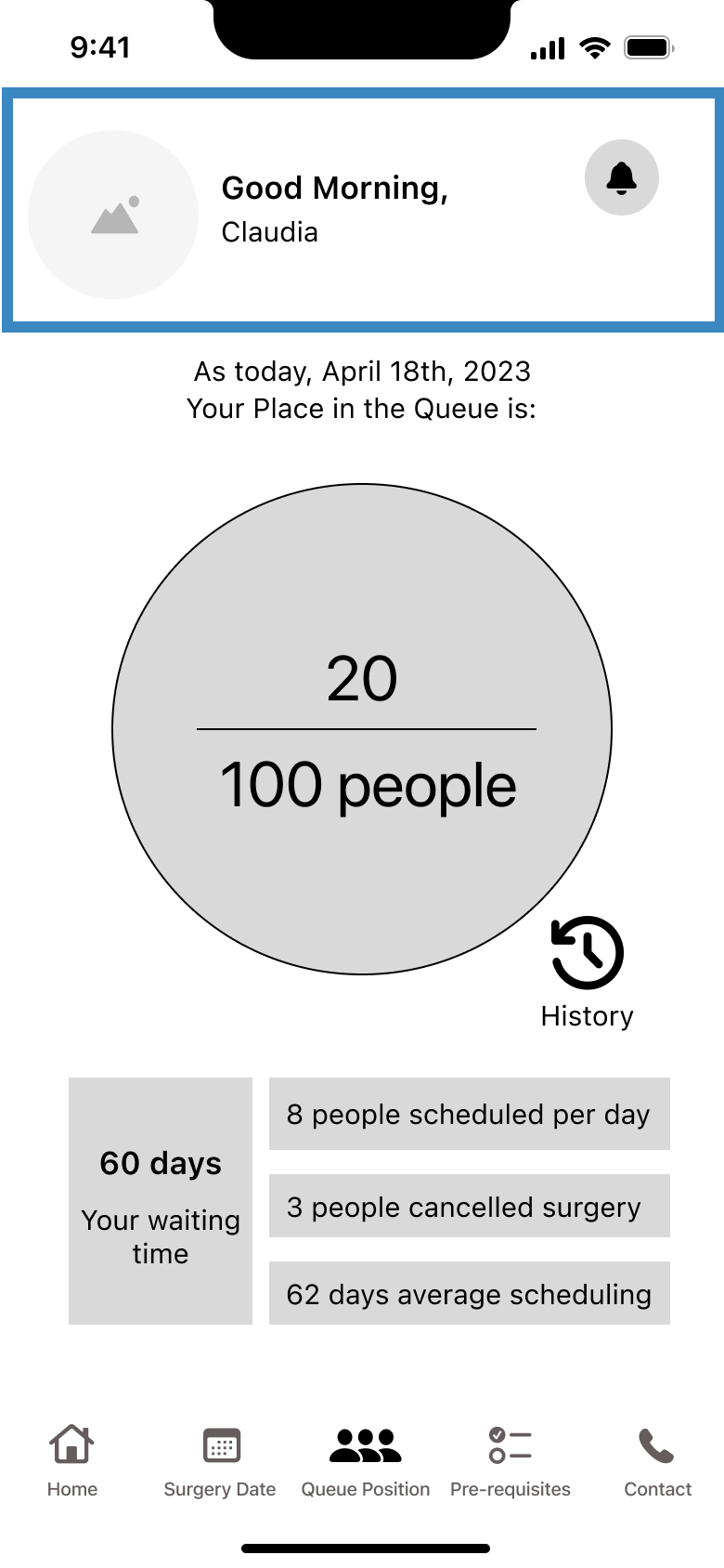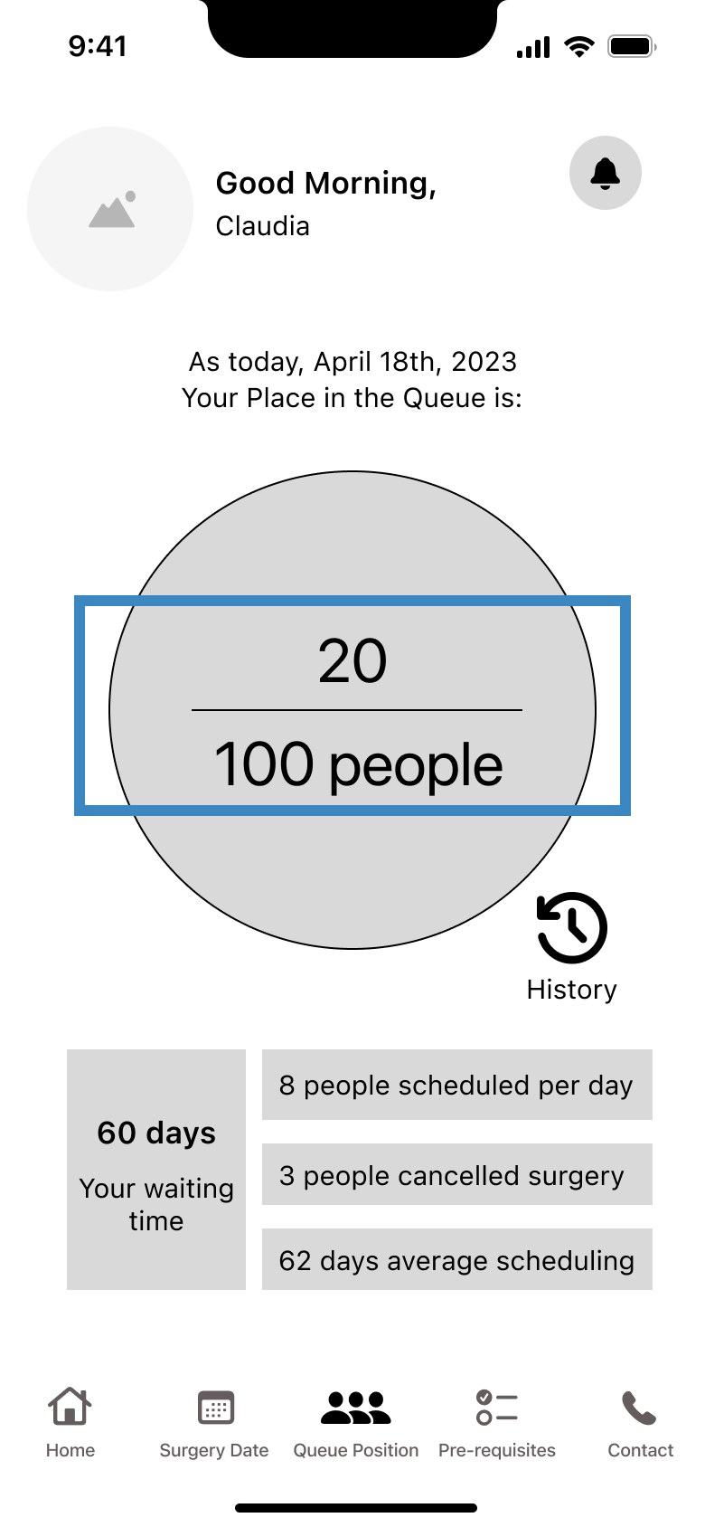 As a surgical patient, I wouldn’t be able to see my position in the queue while waiting for my surgery date so that I can have transparency about the waiting period